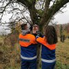 Nach kurzer Erläuterung durch die NABU-Mitglieder Michael Borgolte und Christian Albert über die verschiedenen Nistkästen, wurden diese gleichmäßig an den Bäumen der Streuobstwiese anbringen.